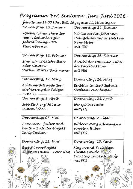 Unser reichhaltiges Programm beinhaltet gemeinsames Singen, Musikbeiträge, Andachten und interessante Lebensberichte oder Referate.