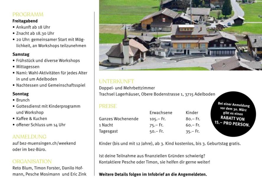 Vom 1. – 3. Mai sind wir in den Trachselhäusern in Adelboden. Das Thema lautet: Neun Wege, Gott zu begegnen.